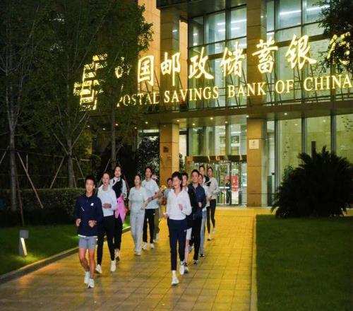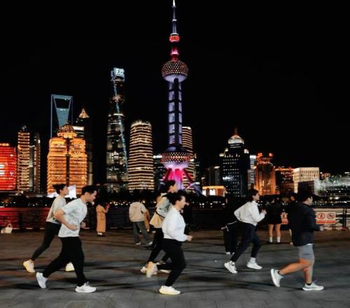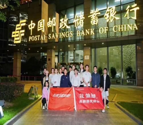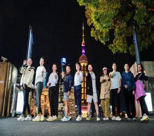 五星炫跑吧成员和北外滩高颜值夜跑团,从中国邮政储蓄银行上海分行营业部出发进行一段五公里左右的夜跑训练。他们中的大部分人都将参加11月23日举行的2025虹口10公里精英赛,大家借着此次机会提前踩点、热身备战。
