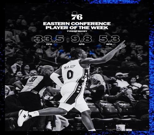过去一周,马克西场均33.5分5.3篮板9.8助攻,投篮命中率46.7%,三分命中率36.6%,罚球命中率89.2%,率领76人取得3胜1负的战绩。