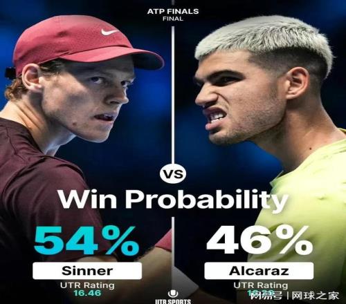 有两个原因:一、博彩公司力挺辛纳,在夺冠赔率方面对他开出1赔1.53,领先阿尔卡拉斯的1赔2.62;二、UTR Sports在亮出这场年终总决赛的冠军争夺战的获胜支持率时,辛纳也以54%力压阿尔卡拉斯的46%。