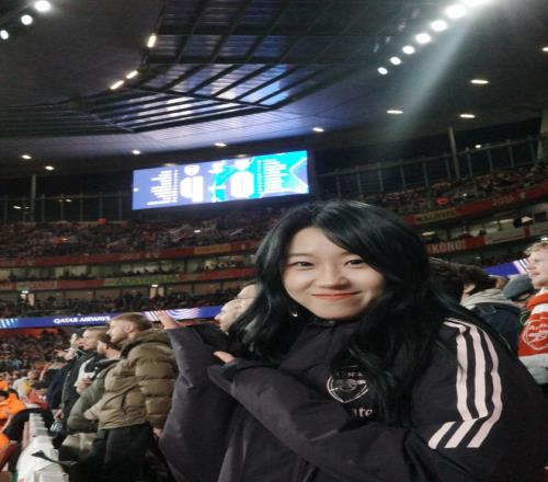 A:我叫菲菲,是一名95后女球迷,出生在山东济南。我的俱乐部主队是阿森纳,因为现在在伦敦工作,所以每到世界杯或大赛,我也会选择支持英格兰。我和足球的最初记忆其实非常生活化。小时候的夏夜,会跟着爸爸去济南的烧烤摊看世界杯,老电视、小板凳,还有一群陌生却因为足球迅速热络起来的大人们。现在回想起来,那些画面都还是特别珍贵的记忆。中学时,班里大部分同学都是皇马和C罗的球迷,每天都能听到朋友们聊足球,我们也会一起去看山东泰山的主场比赛。上大学之后,我更多是看世界杯和欧洲杯,不太会熬夜追联赛。直到去英国读书,才和室友们一起关注英超的各种动向。但真正的转折点,是去年正式来到伦敦工作,我才开始尽量一场不落地走进球场支持自己的主队。截至目前,我已经在现场看过45场比赛,这种连接是过去十几年隔着屏幕无法比拟的。我想我这辈子都会是阿森纳球迷了。